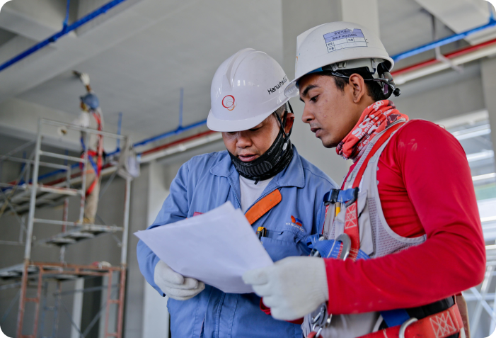 Kami menawarkan layanan konstruksi terintegrasi, mencakup proses desain, perencanaan, pelaksanaan, hingga pengawasan proyek. Tim ahli kami terdiri dari insinyur sipil, tenaga teknis bersertifikat, serta personel bersertifikasi AK3 Umum, MIGAS, dan ahli konstruksi berpengalaman yang memastikan pekerjaan dilakukan secara aman, efisien, dan sesuai standar mutu industri.